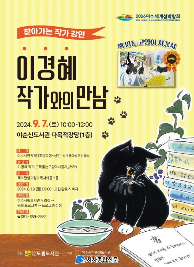 À̰æÇý ÀÛ°¡´Â ¿À´Â 9¿ù 7ÀÏ ¿ÀÀü 10½Ã¿¡ À̼ø½Åµµ¼°ü¿¡¼ ¡®Ã¥ÀÇ Åº»ý °úÁ¤°ú µ¶¼ÀÇ Áñ°Å¿ò¡¯À» ÁÖÁ¦·Î ¡ºÃ¥ Àд °í¾çÀÌ ¼²ÇÄ¡¡»Ã¥ ¼Ò°³¿Í ÁýÇÊ °úÁ¤, Ã¥¿¡ ¾ð±ÞµÈ µµ¼µé¿¡ ´ëÇØ °¿¬Çϰí ÄûÁ ÅëÇØ µ¶ÀÚ¿Í ÁúÀÇÀÀ´ä ½Ã°£À» °¡Áú ¿¹Á¤ÀÌ´Ù.