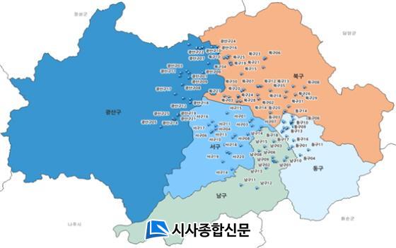 ±¤ÁÖÁö¿ª Ⱦ´Üº¸µµ Àαٿ¡ ¼³Ä¡µÈ ±×´Ã¸·Àº ÃÑ 613°³À̸ç, µµ·Î »ì¼öÂ÷·®Àº ÃÖ´ë 16´ë·Î ÇÏ·çÆò±Õ 400§°¸¦ ¿îÇàÇϰí ÀÖ´Ù.