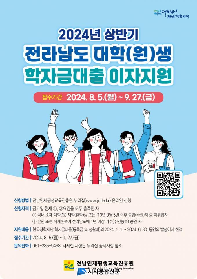 | Àü¶ó³²µµ, ´ëÇлý ÇÐÀÚ±Ý ´ëÃâÀÌÀÚ Áö¿ø »ç¾÷ ÃßÁø 9¿ù 27ÀϱîÁö Á¢¼ö¡¦Çѱ¹ÀåÇÐÀç´Ü ´ëÃâÀÚ 1~6¿ùºÐ |