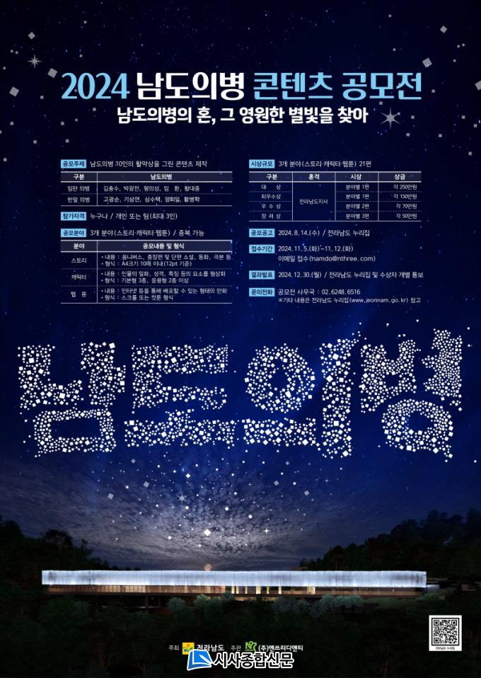 ±âŸ ÀÚ¼¼ÇÑ »çÇ×Àº Àü³²µµ ´©¸®Áý(www.jeonnam.go.kr) °í½Ã/°ø°í¸¦ ÅëÇØ È®ÀÎÇÒ ¼ö ÀÖÀ¸¸ç, ³²µµÀǺ´ ÄÜÅÙÃ÷ °ø¸ðÀü »ç¹«±¹(02-6248-6516)À» ÅëÇØ ÀÚ¼¼ÇÑ ¾È³»¸¦ ¹ÞÀ» ¼ö ÀÖ´Ù.