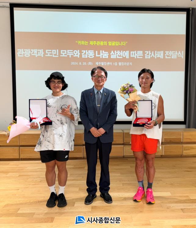ÀÌ ÀÚ¸®¿¡¼ °¨»çÆÐ¸¦ Àü´Þ¹ÞÀº Á¶½ÅÈ«¾¾´Â ¡°Æò¼Ò ¾Æ¸§´Ù¿î Á¦ÁÖ ÀÚ¿¬ÀÇ ÇýÅÃÀ» ´©¸®¸ç Ç×»ó °í¸¶¿òÀ» ´À³¢°í ÀÖ´Ù¡±¸ç ¡°¿©Çà°´°ú µµ¹ÎºÐµé ¸ðµÎ°¡ Á¦ÁÖÀÇ È¯°æÀ» º¸Á¸ÇÏ°í »ç¶ûÇÏ´Â ¸¶À½¿¡ µ¿ÂüÇØ ÁÖ½Ç °ÍÀ» ºÎʵ台´Ù¡±°í ¸»Çß´Ù.
