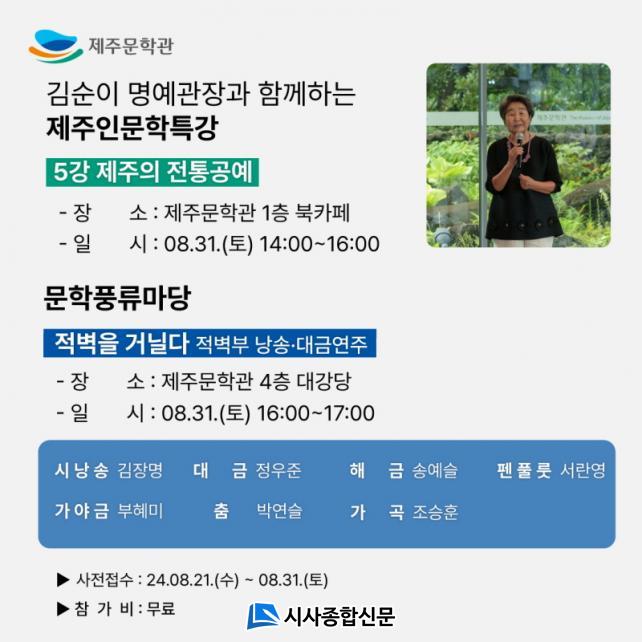 ¿À´Â 10¿ù¿¡´Â ¸í»çÃÊû Ưº°°¿¬µµ ¿¹Á¤µÅ ÀÖ´Ù. Âü°¡ ½ÅûÀº Á¦ÁÖ¹®Çаü ´©¸®Áý ³» ±³À°¡¤ÇÁ·Î±×·¥ ½Åû¶õ¿¡¼ ÇÏ¸é µÈ´Ù. 21ÀϺÎÅÍ °¿¬ÀϱîÁö ¼±Âø¼ø 80¸íÀ» ¸ðÁýÇϸç, Âü°¡ºñ´Â ¹«·á´Ù.