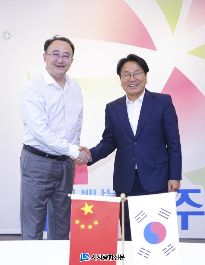 ÀÌ¿¡ °±âÁ¤ ±¤ÁÖ½ÃÀåÀº ¡°Áß±¹ ±¹¿µ 3´ë Ç×°ø»çÀÌÀÚ ±¤ÁÖ½Ã¿Í Àڸŵµ½ÃÀÎ ±¤Àú¿ì¿¡ º»»ç°¡ ÀÖ´Â ³²¹æÇ×°øÀÇ ±¤ÁÖ ¹æ¹®À» ȯ¿µÇÑ´Ù¡±¸ç ¡°±¤ÁÖ´Â ¸Ú¡¤¸À¡¤ÀÇÀÇ °íÀåÀ¸·Î Áß±¹ÀεéÀÌ °ü½ÉÀ» °¡Áú¸¸ÇÑ ½ºÅ丮°¡ ¸¹Àº ¸Å·ÂÀûÀÎ µµ½Ã´Ù. ¶ÇÇÑ °ü±¤¸Å·Â ¿ä¼Ò Áß ÇϳªÀÎ º¹ÇÕ¼îÇθô µîµµ Àß ¸¸µé¾î°¡°í ÀÖ´Ù¡±°í ¹àÇû´Ù.