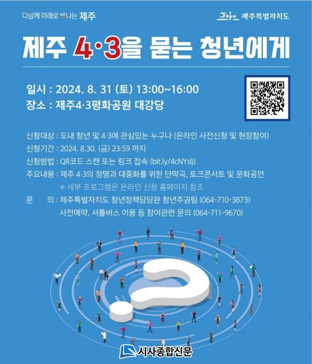 4‧3¿¡ °ü½ÉÀÖ´Â Á¦ÁÖû³â ¹× µµ¹Î ´©±¸³ª Âü¿© °¡´ÉÇϸç, »çÀü ¿Â¶óÀÎ(https://bit.ly/4cNYslj) ½ÅûÀÚ ¼±Âø¼ø 100¸í¿¡°Ô´Â °í½ÃÈ« ÀÛ°¡°¡ ±âÁõÇÑ ½ÅÀÛ¡¸Ä§¹¬ÀÇ ºñ¸Á·Ï¡¹ÀÌ Çà»çÀå¿¡¼ ÁõÁ¤µÈ´Ù.