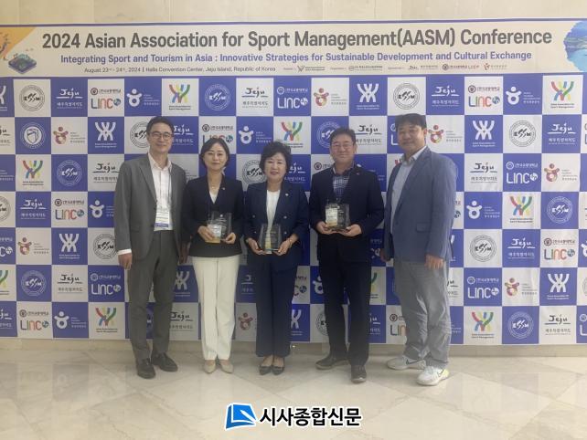 À̹ø ±¹Á¦ ÄÁÆÛ·±½º¿¡¼ Á¦ÁÖÆ¯º°ÀÚÄ¡µµÀÇȸ 12´ë Àü¹Ý±â ¹®È°ü±¤Ã¼À°À§¿øÈ¸ ÀÇÁ¤È°µ¿À» ÇÏ¿´´ø ¹ÚµÎÈ ÀÇ¿ø(¹®È°ü±¤Ã¼À°À§¿øÈ¸)․Á¤¹Î±¸(ȯ°æµµ½ÃÀ§¿øÀå)․À̽¾Æ(ȯ°æµµ½ÃÀ§¿øÈ¸) ÀÇ¿øÀº ¾Æ½Ã¾Æ½ºÆ÷Ã÷°æ¿µÇÐȸ(ȸÀå ±ÇÇüÀÏ, Áß¾Ó´ëÇб³ ±³¼ö)¿¡¼ ¡®Á¦ÁÖÆ¯º°ÀÚÄ¡µµ°¡ ½ºÆ÷Ã÷¸¦ ¸Å°³·Î °ü±¤, ÇмúÀ» À¶ÇÕ½ÃÄÑ Áö¿ª °æÁ¦È°¼ºÈ ¹× ¾Æ½Ã¾Æ ¹®È±³·ùÀÇ ÀåÀ» ¸¶·ÃÇϴµ¥ Áß¿äÇÑ ¿ªÇÒ¡¯À» Çϴµ¥ ÀÎÁ¤¹Þ¾Æ °¨»çÆÐ¸¦ ¼ö»óÇß´Ù.