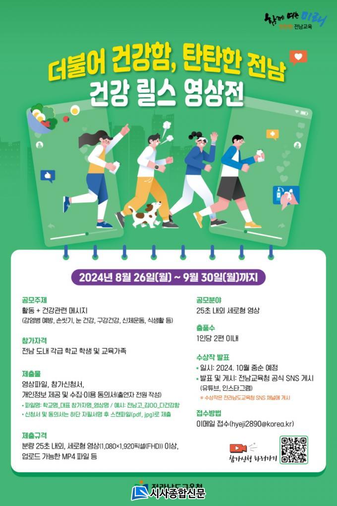 [½Ã»çÁ¾ÇսŹ® = ¿À½ÂÅà ±âÀÚ] Àü¶ó³²µµ±³À°Ã»(±³À°°¨ ±è´ëÁß)Àº 26ÀϺÎÅÍ 9¿ù30ÀϱîÁö ¡®´õºÒ¾î °Ç°ÇÔ, źźÇÑ Àü³²¡¯ °Ç° ¸±½º ¿µ»ó°ø¸ðÀüÀ» ¿î¿µÇÑ´Ù.