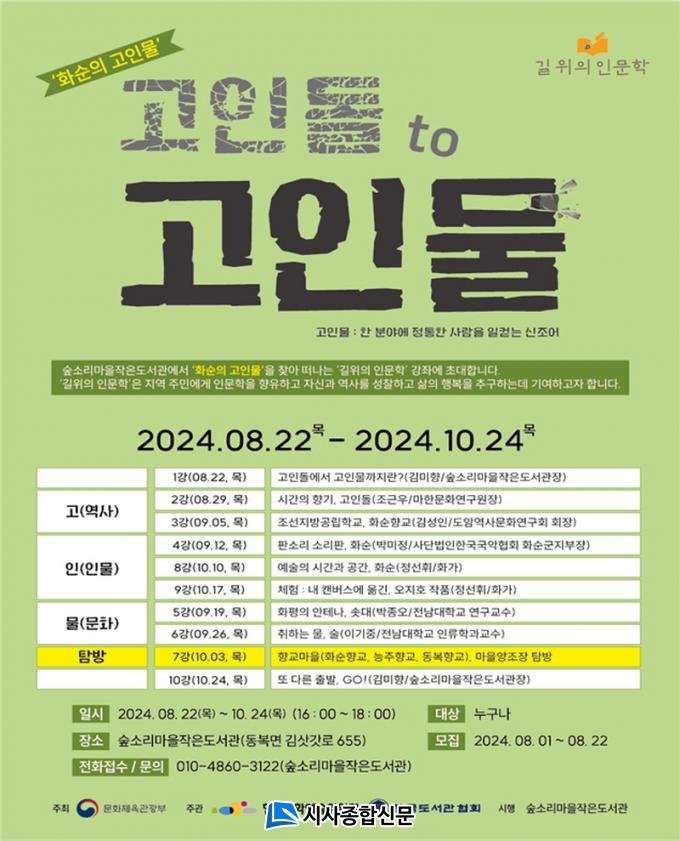 º» °Á´ ¹®ÈüÀ°°ü±¤ºÎ Áö¿øÀ» ¹Þ¾Æ 2024³â 8¿ù 22ÀÏ °³°ÇÏ¿© 10¿ù 24ÀϱîÁö µ¿º¹¸é »ïº¹±Ç Ä¿¹Â´ÏƼ¼¾ÅÍ(ȼø±º µ¿º¹¸é ±è»ñ°«·Î 655)¿¡¼ ÁøÇàµÈ´Ù.