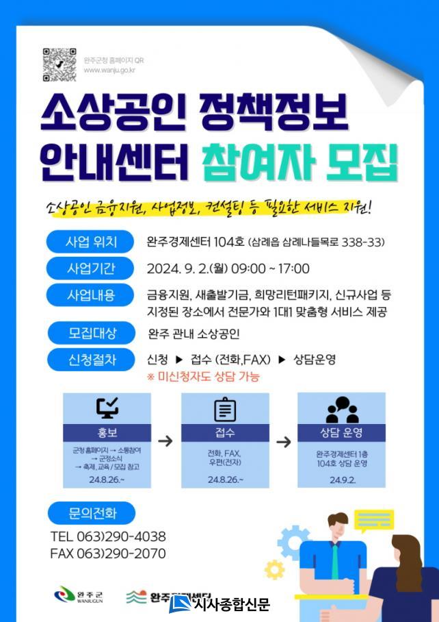 ¼Ò»ó°øÀÎ Á¤Ã¥Á¤º¸ ¾È³»¸¦ ¹Þ°íÀÚ ÇÏ´Â ¼Ò»ó°øÀÎÀº ¿ÏÁÖ±ºÃ» ȨÆäÀÌÁö(¼ÒÅëÂü¿©¡æ±ºÁ¤¼Ò½Ä¡æÃàÁ¦, ±³À°/¸ðÁý)¸¦ Âü°íÇϰųª ¿ÏÁÖ°æÁ¦¼¾ÅÍ(063-290-4038)¿¡ ¹®ÀÇÇÏ¸é µÈ´Ù. »çÀü ¹Ì½ÅûÀÚµµ ´çÀÏ »ó´ãÀÌ °¡´ÉÇÏ´Ù.