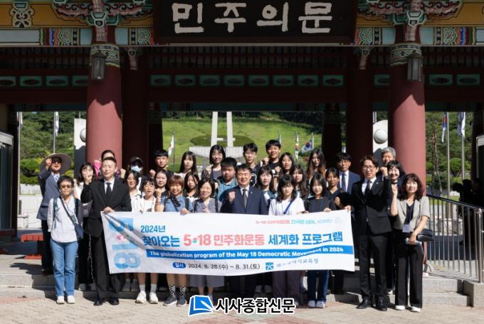 [½Ã»çÁ¾ÇսŹ® = ¿À½ÂÅà ±âÀÚ] ÀÌÁ¤¼± ±³À°°¨Àº 29ÀÏ ¡®Ã£¾Æ¿À´Â 5¡¤18¹ÎÁÖȿ ¼¼°èÈ ÇÁ·Î±×·¥¡¯À¸·Î ±¤ÁÖ¸¦ ãÀº ´ë¸¸ ŸÀ̳½Ã °íµîÇб³ Çлý 24¸í°ú ±¹¸³5¡¤18¹ÎÁÖ¹¦Áö¸¦ Âü¹èÇß´Ù.