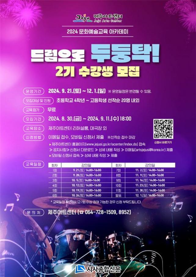 ±³À° ½ÅûÀº ÃʵîÇб³ 4ÇгâºÎÅÍ °íµîÇлý±îÁö û¼Ò³âÀÌ¸é ´©±¸³ª °¡´ÉÇϰí, ¼±Âø¼øÀ¸·Î 20¿© ¸íÀ» ¸ðÁýÇÑ´Ù. ½Åû ±â°£Àº 8¿ù 30ÀÏ(±Ý)ºÎÅÍ 9¿ù 11ÀÏ(¼ö)±îÁöÀ̸ç, ¸ð¹ÙÀÏ ½Åû¼ ¶Ç´Â À̸ÞÀÏ(artsjejusi@korea.kr)À» ÅëÇØ Á¢¼öÇÏ¸é µÈ´Ù.