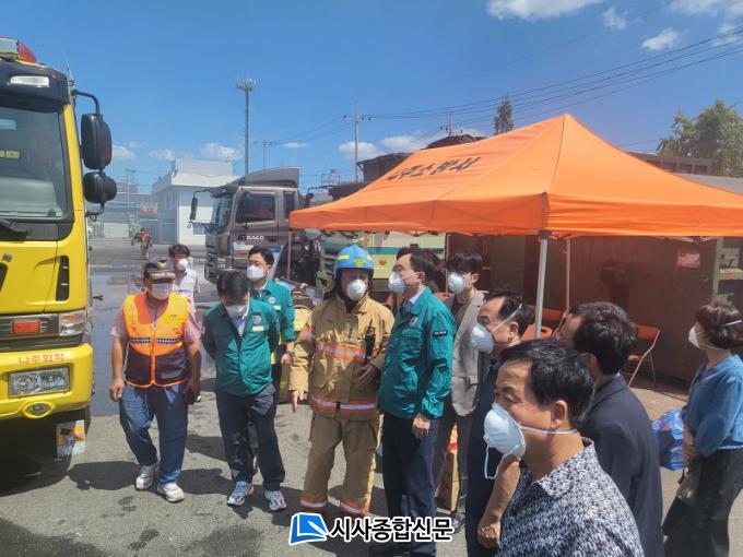 | À±º´Å ³ªÁÖ½ÃÀåÀÌ Áö³´Þ 30ÀÏ ÈÀç°¡ ¹ß»ýÇß´ø ºÀȲ¸é Æó±â¹° Àç󸮰øÀå ÇöÀåÀ» ã¾Æ ÇÇÇØ »óȲÀ» Á¡°ËÇß´Ù. (»çÁøÁ¦°ø-³ªÁÖ½Ã) |