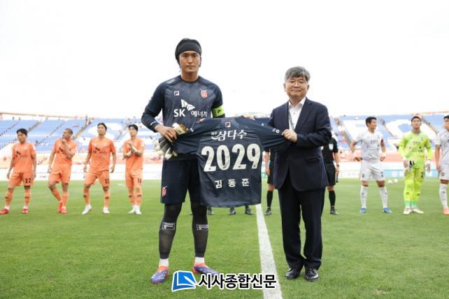 ƯÈ÷, °æ±â ½ÃÀÛ Àü °¡Àå ÁÖ¸ñÀ» ¹Þ´Â ¼±¼ö´Ü ÀÔÀå ¼ø¼ ÀÌÈÄ Àç°è¾à ü°á ¼Ò½ÄÀ» ¾Ë¸®¸é¼ ±èµ¿ÁØÀ» ´õ¿í µ¸º¸ÀÌ°Ô ¸¸µå´Â »õ½ÉÇÑ ¹è·Áµµ ÀØÁö ¾Ê¾Ò´Ù. ¼ö ¸¹Àº ÆÒµé ¾Õ¿¡¼ °è¾à±â°£À» ¶æÇÏ´Â '2029'°¡ ¸¶Å·µÈ À¯´ÏÆûÀ̶ó´Â Ưº°ÇÑ ¼±¹°À» ¹ÞÀº ±èµ¿ÁØÀº "Àç°è¾à¿¡ ´ëÇØ¼ Å« °í¹ÎÀÌ ¾ø¾ú´Ù. Ç×»ó ³»°Ô ¹ÏÀ½°ú ½Å·Ú¸¦ º¸³»ÁÖ´Â ±¸´Ü°ú ÄÚνºÅÂÇÁ, µ¿·áµéÀÌ ÀÖ¾ú±â ¶§¹®ÀÌ´Ù. ÀÌÁ¦ ±×µé¿¡°Ô ´õ ÁÁÀº Ȱ¾àÀ¸·Î º¸´äÇØ¾ß ÇÑ´Ù"¶ó°í ¸»Çß´Ù.