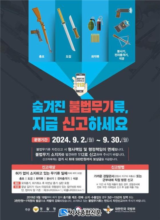 ºÒ¹ý¹«±â·ù ÀÚÁø½Å°í ´ë»óÀº Çã°¡ ¾øÀÌ ¼ÒÁöÇϰí Àְųª ¼ÒÁö Çã°¡°¡ Ãë¼ÒµÈ Ãѱâ, Ⱦà·ù(Ⱦà‧Æø¾à‧½Çź‧Æ÷ź µî), µµ°Ë, ºÐ»ç±â, ÀüÀÚÃæ°Ý±â, ¼®±Ã µî ºÒ¹ý¹«±â·ù ÀÏüÀÌ´Ù.