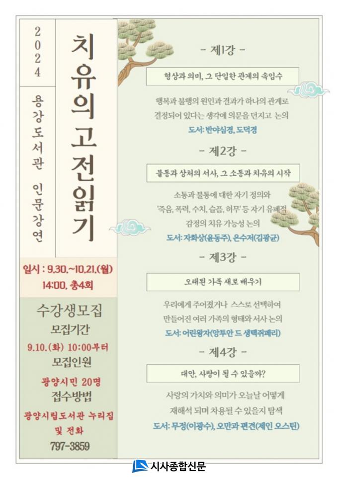 ¸¶À½ Àι® ¾à¹æ¡¸Ä¡À¯ÀÇ °íÀü Àб⡹¿¡ ´ëÇÑ ³»¿ëÀº ±¤¾ç½Ã¸³µµ¼°ü ´©¸®Áý(ȨÆäÀÌÁö)À» ¹æ¹®Çϰųª ÀüÈ(¢Ï061-797-3859)·Î ¹®ÀÇÇϸé ÀÚ¼¼È÷ ¾Ë ¼ö ÀÖ´Ù.