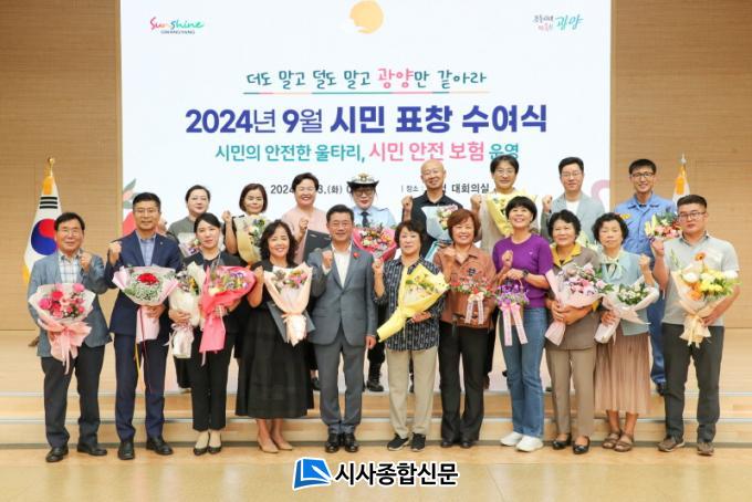 [½Ã»çÁ¾ÇսŹ® = Àå¹Î±Ô ±âÀÚ] ±¤¾ç½Ã´Â Áö³ 9¿ù 3ÀÏ ½Ãû ´ëȸÀǽǿ¡¼ 9¿ù ½ÃÁ¤¹ßÀü À¯°ø ½Ã¹Î ǥâ ¼ö¿©½ÄÀ» °³ÃÖÇØ Áö¿ª»çȸ ¹ßÀü¿¡ °øÇåÇϰí Áö¿ª °÷°÷¿¡¼ ²ÙÁØÇÑ ºÀ»çȰµ¿À» ÆîÃÄ ¿Â ½Ã¹Î 28¸í¿¡°Ô ±íÀº °¨»ç¸¦ ÀüÇß´Ù°í ¹àÇû´Ù.