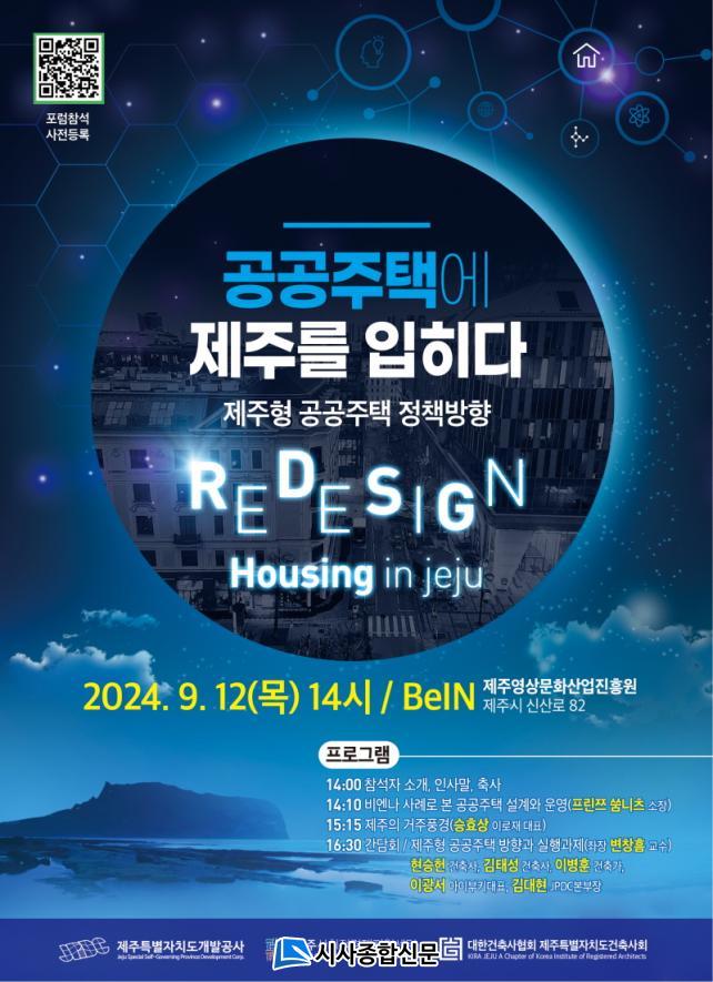 [½Ã»çÁ¾ÇսŹ® = °í¼º¹Î ±âÀÚ] Á¦ÁÖ°³¹ß°ø»ç(»çÀå ¹é°æÈÆ)´Â Á¦ÁÖ»çȸÀû°æÁ¦Áö¿ø¼¾ÅÍ(¼¾ÅÍÀå ÀÓÇöÁ¤), Á¦ÁÖ°ÇÃà»çȸ(ȸÀå Çö±ºÃâ)¿Í °øµ¿À¸·Î Á¦ÁÖÀÇ ÁÖ°Å ¹®Á¦¸¦ ÇØ°áÇϰí, ´õ ³ªÀº »îÀ» À§ÇÑ °øµ¿Ã¼¸¦ ¸¸µé±â À§ÇØ ¿À´Â 9¿ù 12ÀÏ(¸ñ) ¿ÀÈÄ 2½Ã, Á¦ÁÖ¿µ»ó¹®È»ê¾÷ÁøÈï¿ø(BeIN)¿¡¼ ¡®°ø°øÁÖÅÿ¡ Á¦ÁÖ¸¦ ÀÔÈ÷´Ù(ReDesign Housing In Jeju)¡¯ ¼¼¹Ì³ª¸¦ °³ÃÖÇÑ´Ù.