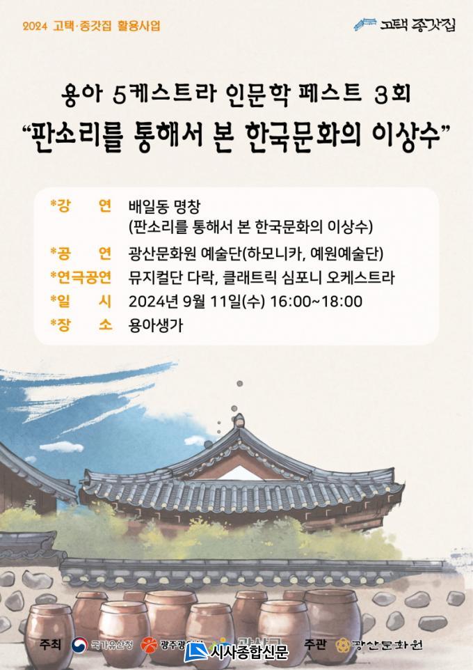 ¡®¿ë¾Æ ¿ÀÄɽºÆ®¶ó Àι®ÇÐ Æä½ºÆ®¡¯´Â ±¹°¡À¯»êû, ±¤ÁÖ±¤¿ª½Ã, ±¤»ê±¸°¡ ÁÖÃÖÇÏ°í ±¤»ê¹®È¿øÀÌ ÁÖ°üÇÏ´Â °íÅÃ‧Á¾°«Áý Ȱ¿ë »ç¾÷ÀÇ Çϳª´Ù. ¿ë¾Æ ¹Ú¿ëöÀÇ ¹®ÇÐ ÀÛǰÀ» ÀçÇØ¼®ÇÑ ¿ÀÄɽºÆ®¶ó °ø¿¬, ¸í»ç ÃÊû Àι® °¿¬À» ¼±º¸ÀδÙ.