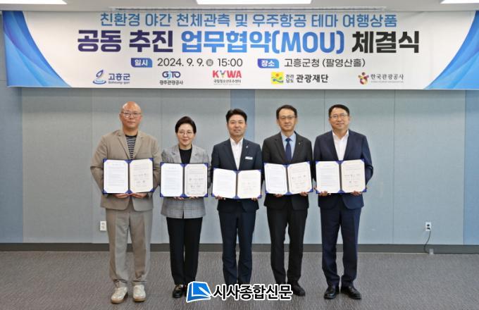 | °íÈﱺ, 5°³ ±â°ü ¾ß°£ õü°üÃø ¿©Çà»óǰ °øµ¿ ÃßÁø ¾÷¹«Çù¾à ü°á(±¹¸³Ã»¼Ò³â¿ìÁÖ¼¾ÅÍ Á¶ÇöÁø ºÎÀå, ±¤ÁÖ±¤¿ª½Ã°ü±¤°ø»ç ±èÁø° »çÀå, Á¶´ëÁ¤ °íÈï ºÎ±º¼ö, Çѱ¹°ü±¤°ø»ç ±¤ÁÖÀü³²Áö»ç ±è¿Ï¼ö Áö»çÀå, Àü¶ó³²µµ°ü±¤Àç´Ü ±è¿µ½Å ´ëÇ¥ÀÌ»ç) |
