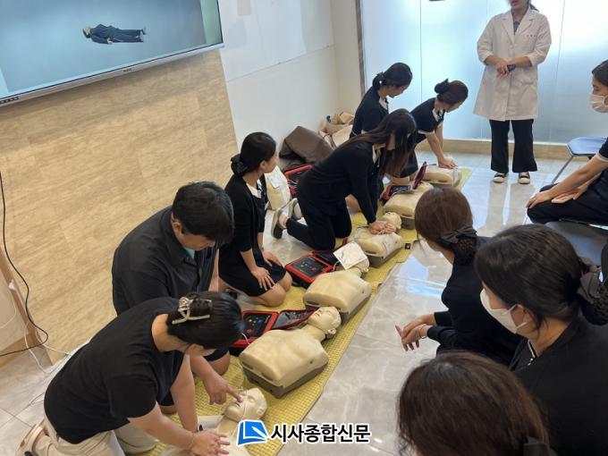 ȯÀÚ ½ÉÁ¤Áö°¡ ¹ß»ýÇÑ ÀÀ±Þ»óȲÀ» °¡ÀåÇÏ¿© ¡ãÀÇ½Ä È®ÀÎ ¡ã119 ½Å°í ¡ã¿Ã¹Ù¸¥ ½ÉÆó¼Ò»ý¼ú ÀÚ¼¼¿Í ¹æ¹ý ¡ã½ÉÆó¼Ò»ý¼ú ½Ç½À ¡ãÀÚµ¿½ÉÀåÃæ°Ý±â(AED) »ç¿ë ¹æ¹ý ¼ø¼·Î ÁøÇàµÆÀ¸¸ç, ƯÈ÷ ÀûÀýÇÑ Ãʱ⠴ëÀÀÀÌ ÀÌ·ïÁú ¼ö ÀÖµµ·Ï ½ÉÆó¼Ò»ý¼ú ¼ø¼¿Í ÀÚ¼¼¸¦ ¸ö¿¡ ÀÍÈ÷´Â ½Ç½À À§ÁÖÀÇ ±³À°À¸·Î ÁøÇàµÆ´Ù.