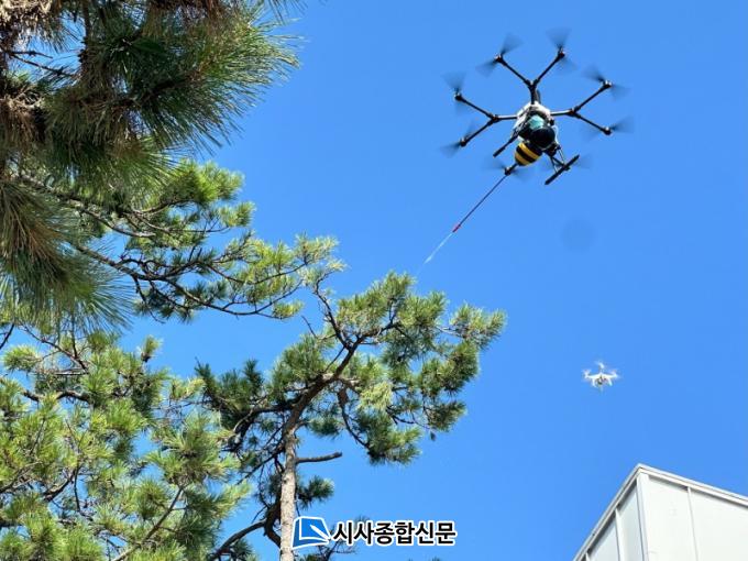 µå·ÐÀ» Ȱ¿ëÇÑ ÀÌÀ¯´Â ¸»¹ú Áý Á¦°Å¸¦ À§ÇØ ¼Ò¹æ¼¿¡¼ Ã⵿ÇÏ¿´À¸³ª, Â÷·® ÁøÀÔÀÌ ¾î·Æ°í, »ç¶÷ÀÌ ¿À¸£±â¿¡´Â Èä°í Á÷°æÀÌ ¾ã¾Æ ²÷¾îÁú ¿ì·Á°¡ ÀÖ´Â 20m ±æÀÌÀÇ ¼Ò³ª¹« À§¿¡ ÀÚ¸®Çϰí ÀÖ¾î¼, ¿Ïº®ÇÑ Á¦°Å°¡ µÇÁö ¾Ê¾Æ ÀϹÝÀûÀÎ ¹æ¹ýÀ¸·Î´Â ¾î·Á¿ö µå·ÐÀ» ÀÌ¿ëÇØ ¹æ¿ªÀ» ½Ç½ÃÇß´Ù.
