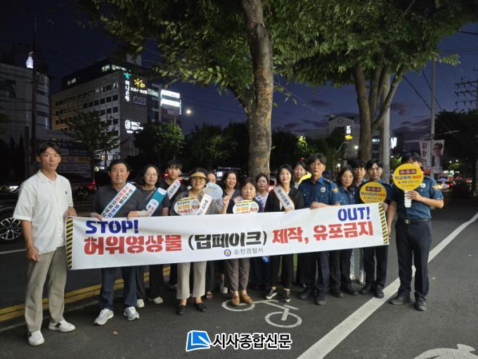 À̳¯ Ä·ÆäÀÎÀº ¼øÃµ°æÂû¼, ¼øÃµ½Ã(Æò»ý±³À°°ú), YWCA û¼Ò³âÀ¯ÇØÈ¯°æ°¨½Ã´Ü µî 20¿©¸íÀÌ Âü¼®ÇØ µöÆäÀÌÅ© °ü·Ã ¿µ»ó¹° Á¦ÀÛ ¹× À¯Æ÷ ±ÝÁö ¹®±¸°¡ »õ°ÜÁø Ç÷¡Ä«µå¸¦ µé°í Ä«µå´º½º È«º¸¹°À» Àü´ÞÇÏ¸é¼ ÇãÀ§¿µ»ó¹°(µöÆäÀÌÅ©) ¹üÁË À§Ç輺 ¹× ¿¹¹æ¼öÄ¢À» ¾Ë¸®´Â µî È«º¸È°µ¿À» Àü°³Çß´Ù.