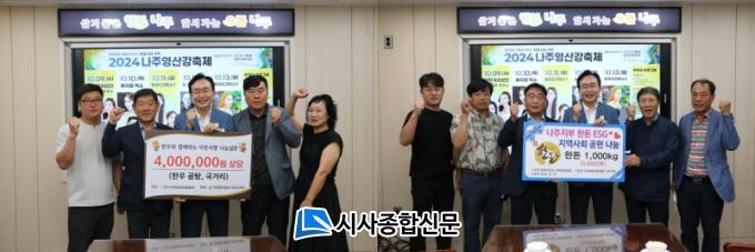 [½Ã»çÁ¾ÇսŹ® = ¿À½ÂÅà ±âÀÚ] ³ªÁÖ½Ã(½ÃÀå À±º´ÅÂ)´Â (»ç)Àü±¹ÇÑ¿ìÇùȸ ³ªÁÖ½ÃÁöºÎ(ÁöºÎÀå ±èÀ翵)¿Í (»ç)´ëÇÑÇѵ·Çùȸ ³ªÁÖ½ÃÁöºÎ(ÁöºÎÀå Á¶¾ï±â)°¡ ¾î·Á¿î ÀÌ¿ôÀ» À§ÇØ ÇÑ¿ì °õÅÁ°ú Çѵ·À» ±âŹÇß´Ù°í 11ÀÏ ¹àÇû´Ù.