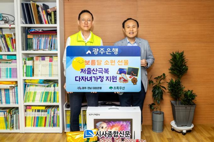 ±¤ÁÖÀºÇàÀº ¾î·Á¿î ¿©°Ç ¼Ó¿¡¼µµ ¿ôÀ½°ú °¨»çÀÇ ¸¶À½À» ³õÁö ¾Ê°í ¼º½ÇÇÏ°Ô »ì¾Æ°¡´Â 5³²¸Å ´ÙÀÚ³à °¡Á¤À» À§ÇØ ¿À·¡µÈ ¼ö³³Àå°ú ÀÇÀÚ¸¦ ±³Ã¼ÇØÁÖ¾úÀ¸¸ç, ÇнÀ¿ë ³ëÆ®ºÏ°ú Å×ºí¸´ µî ÃÑ 3¹é¸¸¿ø »ó´çÀÇ ¼Ò¿ø ¼±¹°À» Àü´ÞÇß´Ù.