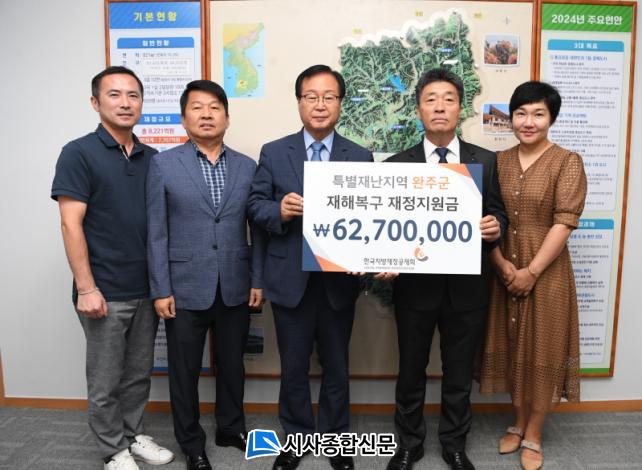 | Çѱ¹Áö¹æÀçÁ¤°øÁ¦È¸, ¿ÏÁÖ±º¿¡ ÀçÇØº¹±¸ Áö¿ø±Ý Àü´Þ |