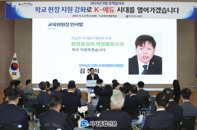 | ±èÁ¤Èñ ±³À°À§¿øÀåÀÌ Áö³ 9¿ù 12ÀÏ ¡®2024³â 9¿ù Àü³²±³À° Á¤Ã¥ÇùÀÇȸ¡¯¿¡ Âü¼®ÇÏ¿© Àλ縻À» Çϰí ÀÖ´Ù.