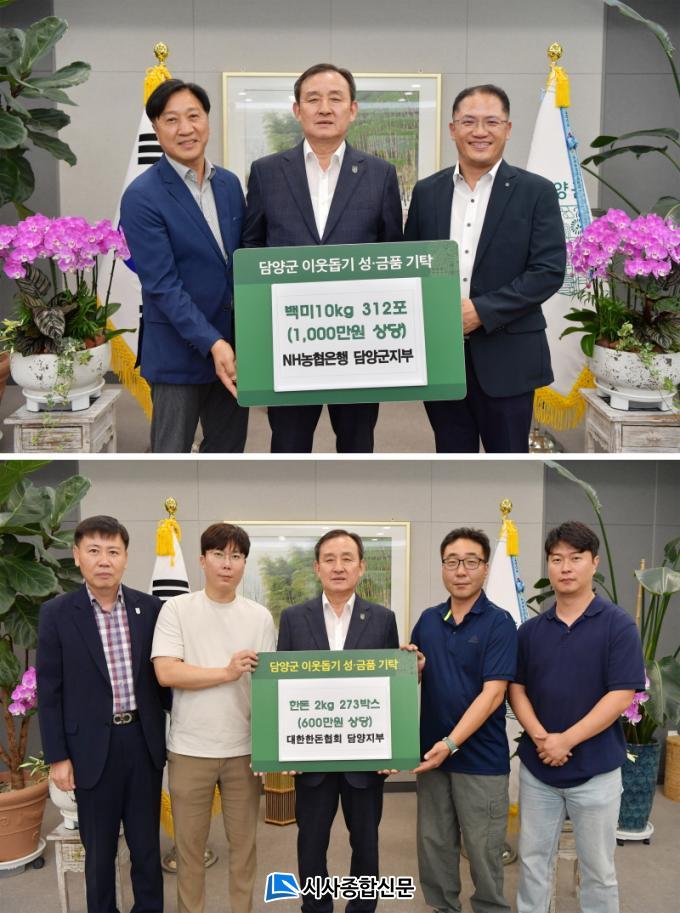 ´ã¾ç±º¿¡ Àü´ÞµÈ ÁÖ¿ä ÈÄ¿ø ¼ºÇ°Àº ¡ã¢ßÆÄ¹ÖÇϿ콺(´ëÇ¥ °Áر¸) ·ÑÄÉÀÌÅ© 100»óÀÚ(200¸¸ ¿ø »ó´ç) ¡ã´ëÇÑÇѵ·Çùȸ ´ã¾ç±ºÁöºÎ(ÁöºÎÀå °º´±¸) Çѵ· 2kg 273»óÀÚ(600¸¸ ¿ø »ó´ç) ¡ã NH³óÇù ´ã¾ç±ºÁöºÎ(ÁöºÎÀå À̱⺹) ¹é¹Ì 10kg 312Æ÷(1,000¸¸ ¿ø »ó´ç) µîÀ¸·Î ¸¹Àº ºÐµéÀÌ µû¶æÇÑ ¸¶À½À» ÀüÇß´Ù.