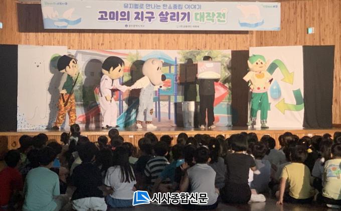 °ø¿¬Àº Áö±¸¿Â³È·Î ÁýÀ» ÀÒ°í ±¾ÁÖ¸²¿¡ óÇÑ ºÏ±Ø°õ ¡®°í¹Ì¡¯°¡ ´Ù½Ã ºÏ±ØÀ¸·Î µ¹¾Æ°¡ ÇູÇÏ°Ô »ì ¼ö ÀÖµµ·Ï Áö±¸ »ì¸®±â ´ëÀÛÀüÀ» ÆîÄ¡´Â ³»¿ëÀ¸·Î ±âÈÄÀ§±â¶ó´Â »çȸ¹®Á¦¸¦ ÃʵîÇлýµéÀÇ ´«³ôÀÌ¿¡ ¸ÂÃç ÀÎÇü±Ø ¹ÂÁöÄà ÇüÅ·ΠÀü´ÞÇß´Ù. ƯÈ÷ Áö±¸¿Âµµ »ó½Â ¿äÀÎÀ» ÇÔ²² ã¾Æº¸´Â Âü¿©Çü °ø¿¬À¸·Î ¸ôÀÔµµ¸¦ ³ô¿© ÇлýµéÀÇ È£ÀÀÀ» À̲ø¾ú´Ù.