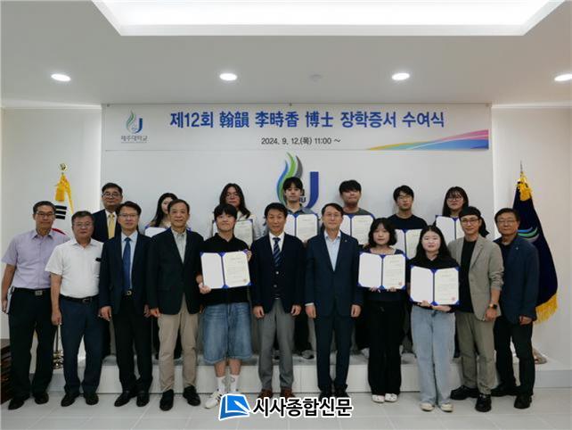 Á¦ÁÖ´ëÇб³(ÃÑÀå ±èÀÏȯ)´Â Áö³ 12ÀÏ Á¦ÁÖ´ë ȸÀǽǿ¡¼ Á¦ÁÖ Ãâ½Å ÀçÀϵ¿Æ÷ »ç¾÷°¡ÀΠͺ À̽ÃÇâ ¹Ú»çÀÇ ÀåÇÐ±Ý Àü´Þ½ÄÀ» °³ÃÖÇß´Ù.