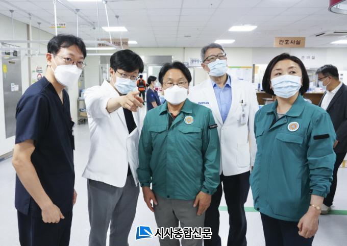 ° ½ÃÀåÀº À̳¯ ÀüÁø¼÷ ±¹È¸ÀÇ¿øÀ» ºñ·ÔÇØ Àü³²´ëº´¿ø Á¤½Å º´¿øÀå, À±°æÃ¶ Áø·áºÎ¿øÀå, ÁÖ¼ºÇÊ ±âȹÁ¶Á¤½ÇÀå, À̺´±¹ ÀÀ±ÞÀÇ·á¼¾ÅÍÀå, ±è¿µ¹Î »ç¹«±¹Àå, ÃÖ¸íÀÌ °£È£ºÎÀå µî ÀÇ·áÁø°ú ÇÔ²² ±Ç¿ªÀÀ±ÞÀÇ·á¼¾ÅÍ ¿î¿µ »óȲ, ÀÀ±ÞȯÀÚ ¼ö¿ë ÇöȲ ¹× ´ëÃ¥ µîÀ» ³íÀÇÇÑ µÚ Ãß¼®¿¡µµ ±Ù¹« ÁßÀÎ ÀÀ±ÞÀÇ·á¼¾ÅÍ ÀÇ·áÁøµéÀ» °Ý·ÁÇß´Ù.