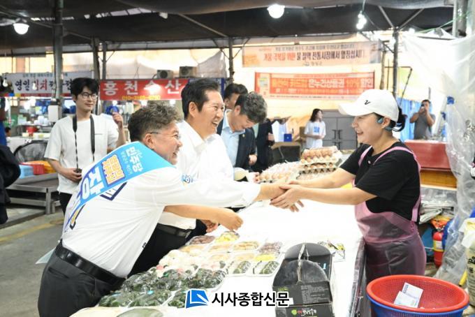Á¤ À§¿øÀåÀº ¿ÀÈÄ¿¡´Â Å͹̳Π½ÃÀå°ú »ó°¡·Î ¹ß°ÉÀ½À» ¿Å°Ü Àå Èĺ¸ÀÇ ÁöÁö È£¼Ò¸¦ À̾°¬´Ù. Á¤ À§¿øÀåÀº "Àü±¹¿¡¼ ¿µ±¤À» ÁÖ¸ñÇϰí ÀÖ¾î Àå¼¼ÀÏ È常¦ ¹Ýµå½Ã ´ç¼±½ÃÄÑ¾ß ÇÑ´Ù"¸é¼ "¿µ±¤ÀÇ ÀںνÉÀ¸·Î °ÇÑ ÃßÁø·ÂÀ» °®Ãá ±º¼ö°¡ ´©±¸°Ú³Ä¸ç Àå¼¼ÀÏ È帰¡ À̱â¸é ¹ÎÁÖ´çÀÌ ½Â¸®ÇÏ´Â °Í"À̶ó°í °Á¶Çß´Ù.