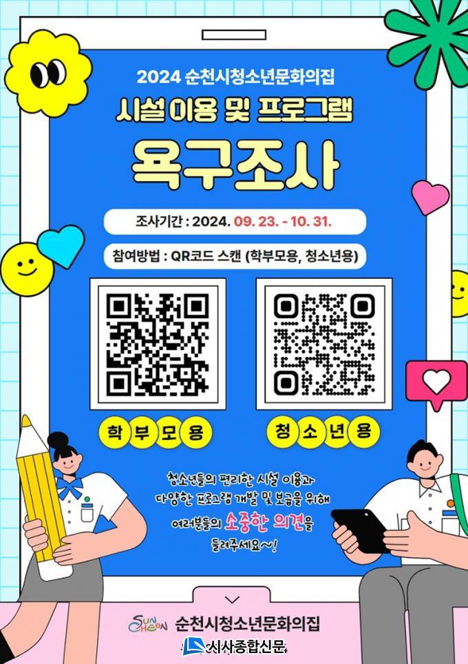 [½Ã»çÁ¾ÇսŹ® = Àå¹Î±Ô ±âÀÚ] ¼øÃµ½Ãû¼Ò³â¹®ÈÀÇÁýÀº ¿À´Â 10¿ù 31ÀϱîÁö û¼Ò³â°ú Çкθð 500¸íÀ» ´ë»óÀ¸·Î ¡¸2024³â ¼øÃµ½Ãû¼Ò³â¹®ÈÀÇÁý ½Ã¼³ÀÌ¿ë ¹× ÇÁ·Î±×·¥ ¿å±¸Á¶»ç¡¹¸¦ ½Ç½ÃÇÑ´Ù°í ¹àÇû´Ù.
