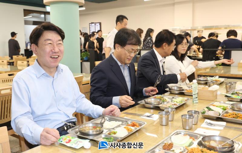¿ì¹ü±â ÀüÁÖ½ÃÀåµµ À̳¯ ±¸³»½Ä´çÀ» ã¾Æ Á÷¿øµé°ú ÇÑ ³¢ ½Ä»ç¸¦ °°ÀÌ ÇÏ¸ç ´ã¼Ò¸¦ ³ª´©°í Á÷¿øµéÀÇ °íÃæ¿¡ ±Í¸¦ ±â¿ïÀ̱⵵ Çß´Ù.