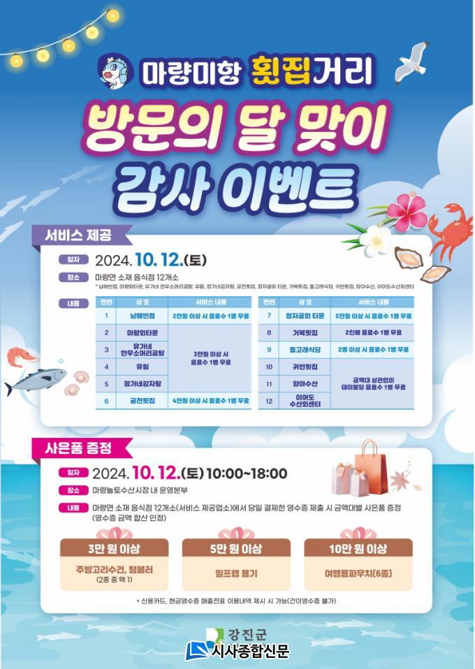 Çà»ç ±â°£¿¡´Â ¸¶·® ¹ÌÇ×ȽÁý°Å¸® ³» À½½ÄÁ¡ 12°³¼Ò¿¡¼ ÀÏÁ¤±Ý¾× ÀÌ»ó °áÁ¦ ½Ã À½·á¼ö¸¦ ¼ºñ½º·Î Á¦°ø¹ÞÀ» ¼ö ÀÖÀ¸¸ç, ´çÀÏ °áÁ¦ÇÑ ÀÏÁ¤±Ý¾×´ë ÀÌ»óÀÇ ¿µ¼öÁõÀ» ¸¶·®³îÅä¼ö»ê½ÃÀå ¿î¿µº»ºÎ¿¡ Á¦Ã⠽à ±Ý¾×´ëº°(3¸¸ ¿ø, 5¸¸ ¿ø, 10¸¸ ¿ø ÀÌ»ó) »çÀºÇ°À» ¹ÞÀ» ¼ö ÀÖ´Ù. ¿î¿µ½Ã°£Àº ¿ÀÀü 10½ÃºÎÅÍ ¿ÀÈÄ 6½Ã±îÁöÀÌ´Ù.