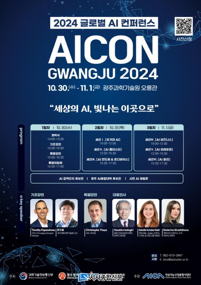 ±¤ÁÖ±¤¿ª½Ã(½ÃÀå °±âÁ¤)´Â ¿À´Â 10¿ù30ÀϺÎÅÍ 11¿ù1ÀϱîÁö ±¤ÁÖ°úÇбâ¼ú¿ø(GIST) ¿À·æ°ü¿¡¼ ¡®Á¦4ȸ ¾ÆÀÌÄÜ(AICON) ±¤ÁÖ 2024¡¯¸¦ °³ÃÖÇÑ´Ù.