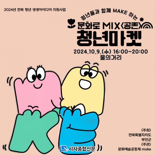 ¹®È¿¹¼ú°øµ¿Ã¼ MAKE´Â ¡°Áö¿ªÀÇ À̾߱⸦ MAKEÇϰí, Ȱµ¿À» MAKEÇϰí, ÈïÀ» MAKEÇϰí, ºê·£µå¸¦ MAKEÇÏ´Ù¡±¸¦ ¸ðÅä·Î Ȱµ¿Çϴ û³â´Üü·Î 2024³â ÀüºÏ û³â »ý»ý ¾ÆÀ̵ð¾î Áö¿ø»ç¾÷¿¡ ¼±Á¤µÇ¾î ¡¸¹®È·Î MIX¡¹ »ç¾÷À» ÃßÁøÇϰí ÀÖ´Ù.
