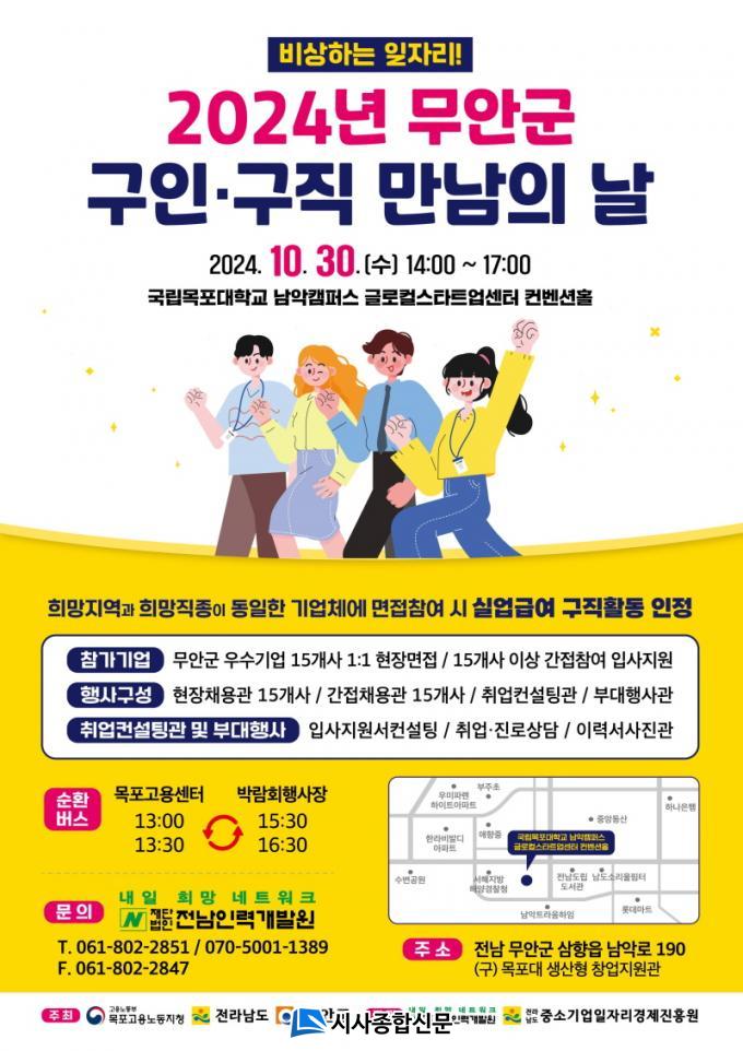 ¡®ºñ»óÇÏ´Â ÀÏÀÚ¸®¡¯¶ó´Â ½½·Î°ÇÀ¸·Î, °í¿ë³ëµ¿ºÎ ¸ñÆ÷Áöû, Àü¶ó³²µµ, ¹«¾È±ºÀÌ ÁÖÃÖÇϰí, Àü³²Àη°³¹ß¿ø, Àü³²Áß¼Ò±â¾÷ÀÏÀÚ¸®°æÁ¦ÁøÈï¿øÀÌ ÁÖ°üÇÏ´Â À̹ø Çà»ç´Â ±â¾÷ü-±¸Á÷ÀÚ °£ ¸ÅĪÀ» ÅëÇØ ´Ù¾çÇÑ Á÷Á¾¿¡ Ãë¾÷ ±âȸ¸¦ Á¦°øÇÏ´Â ÀåÀÌ µÉ Àü¸ÁÀÌ´Ù.