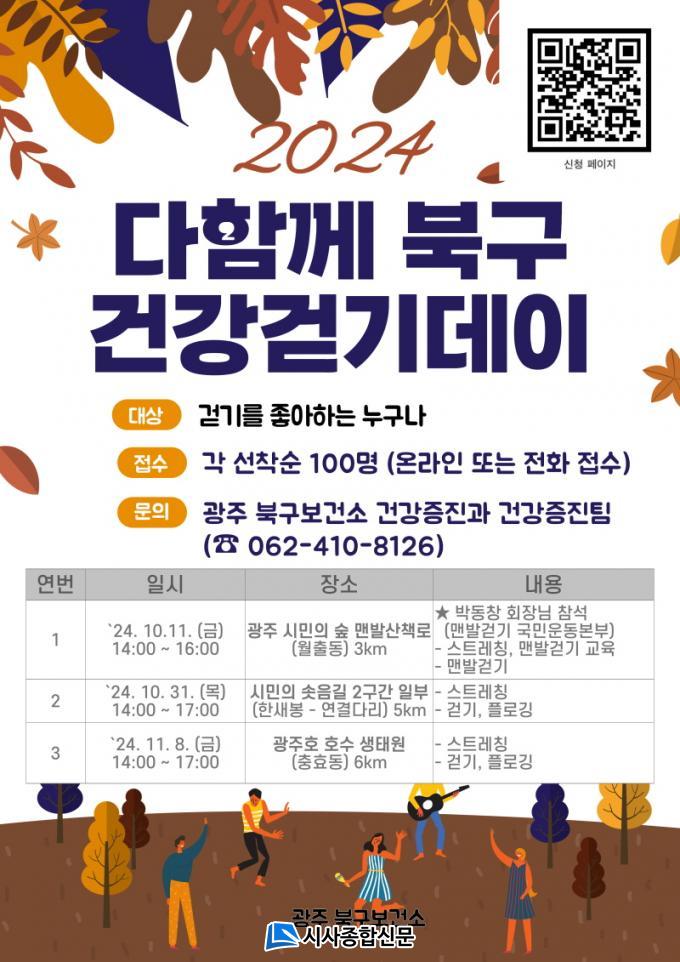 ¡®¸Ç¹ß°È±â±¹¹Î¿îµ¿º»ºÎ¡¯¿Í Çù·ÂÇØ ÃßÁøµÇ´Â À̹ø ¸Ç¹ß °È±â ´ëȸ´Â Áö¿ªÁֹΰú °ü°èÀÚ 150¿© ¸íÀÌ Âü¼®ÇÑ °¡¿îµ¥ ¿ÀÈÄ 2½ÃºÎÅÍ 4½Ã±îÁö ºÏ±¸°¡ ±¤ÁÖ ½Ã¹ÎÀÇ ½£¿¡ Á¶¼ºÇØ ³õÀº ¡®¸Ç¹ß »êÃ¥·Î 1.2§° ±¸°£¡¯À» Âü¼®ÀÚµéÀÌ ÇÔ²² ¿Õº¹À¸·Î °È´Â ÇÁ·Î±×·¥ÀÌ ¿î¿µµÉ ¿¹Á¤ÀÌ´Ù.