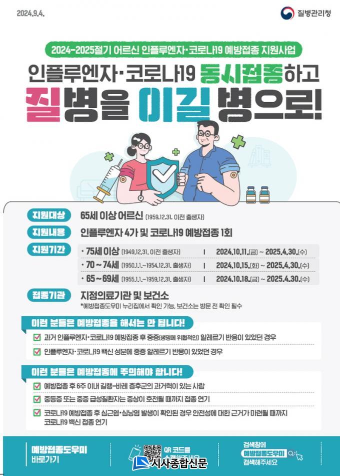 À̹ø ¿¹¹æÁ¢Á¾Àº ƯÁ¤ ±â°£ ½ò¸²À» ¹æÁöÇϱâ À§ÇØ ¿¬·É´ëº° ¼øÂ÷ÀûÀ¸·Î ÁøÇàµÇ¸ç ¡ã75¼¼ ÀÌ»óÀº 10¿ù 11ÀϺÎÅÍ, ¡ã70¼¼~74¼¼´Â 10¿ù 15ÀϺÎÅÍ, ¡ã65¼¼~69¼¼´Â 10¿ù 18ÀϺÎÅÍ ¼øÂ÷ÀûÀ¸·Î ½ÃÀÛÇÑ´Ù. 65¼¼ ÀÌ»ó ¾î¸£½ÅÀº Á¢Á¾ ºÎÀ§¸¦ ´Þ¸®ÇØ Äڷγª19¿Í ÀÎÇ÷翣ÀÚ µ¿½Ã Á¢Á¾À» ±Ç°íÇϸç, ÁÖ¼ÒÁö¿Í °ü°è¾øÀÌ ÁöÁ¤ À§Å¹ÀÇ·á±â°ü¿¡¼ ¹«·á·Î Á¢Á¾ÇÒ ¼ö ÀÖ´Ù.