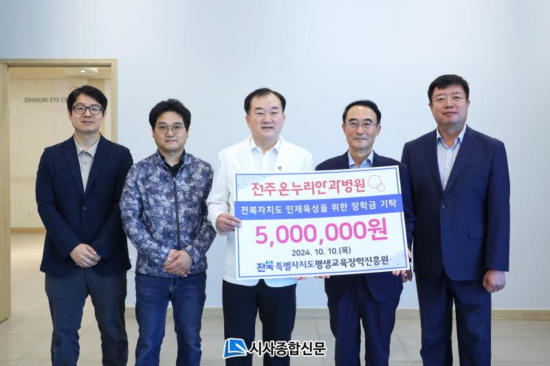 [½Ã»çÁ¾ÇսŹ® = ¿À½ÂÅà ±âÀÚ] ÀüÁÖ ¿Â´©¸®¾È°úº´¿ø Á¤¿µÅà º´¿øÀåÀÌ 2024³â 10¿ù 10ÀÏ, ÀüºÏƯº°ÀÚÄ¡µµÆò»ý±³À°ÀåÇÐÁøÈï¿ø¿¡ ÀÎÀçÀ°¼ºÀ» À§ÇÑ 5¹é¸¸¿øÀÇ ÀåÇбâ±ÝÀ» Àü´ÞÇß´Ù.