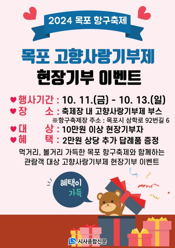 ½Ã´Â ÀÌ ±â°£ À̺¥Æ®¿Í ÇÔ²² ¸ñÆ÷½Ã¸¸ÀÇ Æ¯»öÀÖ´Â ´ä·ÊǰÀ» Àü½Ã¡¤¼Ò°³Çϰí, ¼ÒÁßÇÑ ±âºÎ±ÝÀÌ È°¿ëµÇ´Â ±â±Ý»ç¾÷ È«º¸¸¦ ÁøÇàÇÏ´Â µî °íÇâ»ç¶û±âºÎÁ¦ ¾Ë¸®±â¿¡ Èû¾µ ¿¹Á¤ÀÌ´Ù.