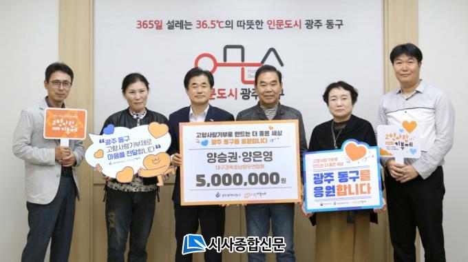 [½Ã»çÁ¾ÇսŹ® = ¿À½ÂÅà ±âÀÚ] ±¤ÁÖ µ¿±¸(ûÀå ÀÓÅÃ)´Â ÃÖ±Ù ¿¡½º¸ô ¾ç½Â±Ç ȸÀå°ú ±×ÀÇ ÀÚ³àÀÎ Àº¿µ ¾¾°¡ °íÇâ»ç¶û±âºÎ±Ý ÃÖ°í¾×ÀÎ 5¹é¸¸ ¿øÀ» ±âºÎÇß´Ù°í ¹àÇû´Ù.