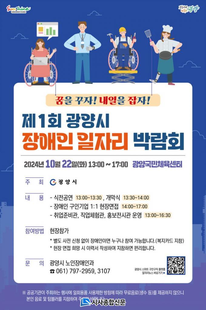 ±¤¾ç½Ã´Â ¿À´Â 22ÀÏ ±¤¾ç±¹¹ÎüÀ°¼¾ÅÍ¿¡¼ ¡°²ÞÀ» ²ÙÀÚ! ³»ÀÏÀ» ÀâÀÚ!¡±¶ó´Â ½½·Î°ÇÀ¸·Î ¡®Á¦1ȸ Àå¾ÖÀÎ ÀÏÀÚ¸® ¹Ú¶÷ȸ¡¯°¡ °³ÃÖµÈ´Ù°í ¹àÇû´Ù.