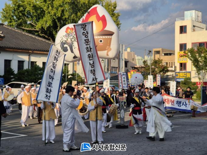 ¹Ú½ÃÈÆ ±¤¾ç¹®Èµµ½Ã¼¾ÅÍÀåÀº ¡°±¤¾çÀ¾ ÁÖ¹ÎÀÚÄ¡À§¿øÈ¸¿Í ±¤¾çÀ¾ û³âȸ´Â °Å¸®ÅëÁ¦¿Í Çà·Ä ¾ÈÀü °¡ÀÌµå ¿ªÇÒÀ» ÇØÁÖ¼Ì°í ±¤¾çÀ¾ dz¹°ÆÐ´Â ±â²¨ÀÌ Çà·ÄÀ» À̲ô´Â °Å¸®±ÂÀ» ¸¸µé¾îÁ̴ּÙ. ¶ÇÇÑ ±¤¾ç°æÂû¼¿¡¼µµ ±³Åë ÅëÁ¦¿¡ ÃÑ·ÂÀ» ´ÙÇØÁּż ¾ÈÀüÇϰí Èï°Ü¿î ÀÚ¸®°¡ µÇ¾ú´Ù¡±¶ó¸ç °¨»ç¸¦ ÀüÇß´Ù. ÀÌ¾î ¡°À̹ø ÇÁ·Î±×·¥À̾߸»·Î ½Ã¹ÎÀÇ, ½Ã¹ÎÀ» À§ÇÑ, ½Ã¹Î¿¡ ÀÇÇÑ ÃàÁ¦ÀÎ µí½Í´Ù, À̹ø ¿ø´Ô ÇàÂ÷ ÀçÇöÇà»çó·³ ½Ã¹ÎÀÌ ÁÖÀΰøÀÌ µÇ´Â »õ·Î¿î ÃàÁ¦ ¹®È°¡ Á¶¼ºµÇ±â¸¦ Èñ¸ÁÇÑ´Ù¡±¶ó°í ¸»Çß´Ù.