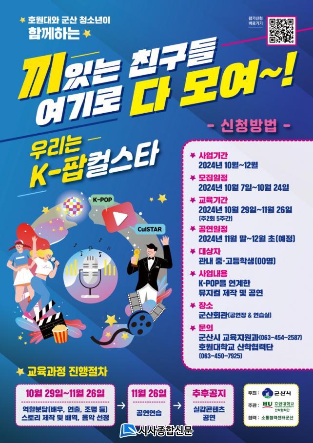 ±º»ê½Ã´Â ±º»êÁö¿ª û¼Ò³âµéÀÇ ¹®È¿¹¼ú ÇâÀ¯ ¹× Áø·Î üÇè È®´ë¸¦ À§ÇØ ´Ù¾çÇÑ ±³À°°úÁ¤À» °í¹ÎÇϰí ÀÖ´Ù. À̹ø¿¡ ¼±º¸ÀÌ´Â ¡®¿ì¸®´Â K-ÆËÄýºÅ¸¡¯ ¿ª½Ã ±× Áß ÇϳªÀÌ´Ù.