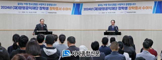 Áö³ 16ÀÏ Çã ¸í¿¹ÀÌ»çÀåÀ» ´ë½ÅÇØ ÀåÇÐ±Ý ¼ö¿©½Ä¿¡ Âü¼®ÇÑ ½É»ó¿ì ÀÌ»çÀåÀº ÀÌ °°Àº ¶æÀ» ÀüÇϸç, Ãë¾à°èÃþ ¾Æµ¿°ú û¼Ò³â 25¸í¿¡°Ô °¢°¢ 200¸¸¿ø¾¿ ÃÑ 5,000¸¸¿øÀÇ ÀåÇбÝÀ» Àü´ÞÇϰí ÀåÇÐ Áõ¼¸¦ ¼ö¿©Çß´Ù.
