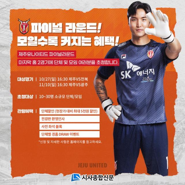 Á¦ÁÖ´Â ÆÄÀ̳ζó¿îµå¿¡¼ ÃÑ 5°æ±â¸¦ ¼ÒÈÇÑ´Ù. Ȩ(Á¦ÁÖ¿ùµåÄŰæ±âÀå)¿¡¼´Â 2°æ±â¸¦ Ä¡¸¥´Ù. 10¿ù 27ÀÏ(ÀÏ) ¿ÀÈÄ 4½Ã30ºÐ ÀüºÏ Çö´ë¿Í 11¿ù 10ÀÏ(ÀÏ) ¿ÀÈÄ 4½Ã30ºÐ ±¤ÁÖFC¿Í »ó´ëÇÑ´Ù.